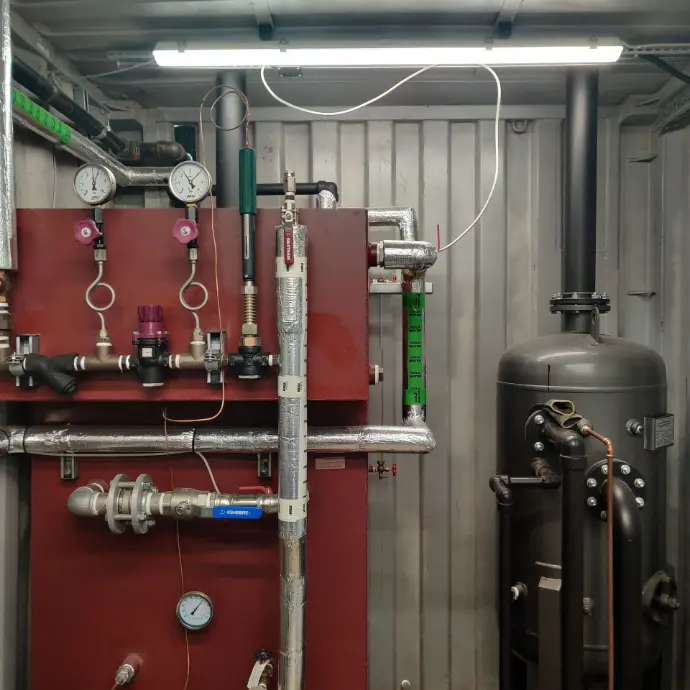 KB01Containerised boiler package complete with steam boiler for max continuous output of 2500 kg/hr F&A100°C.