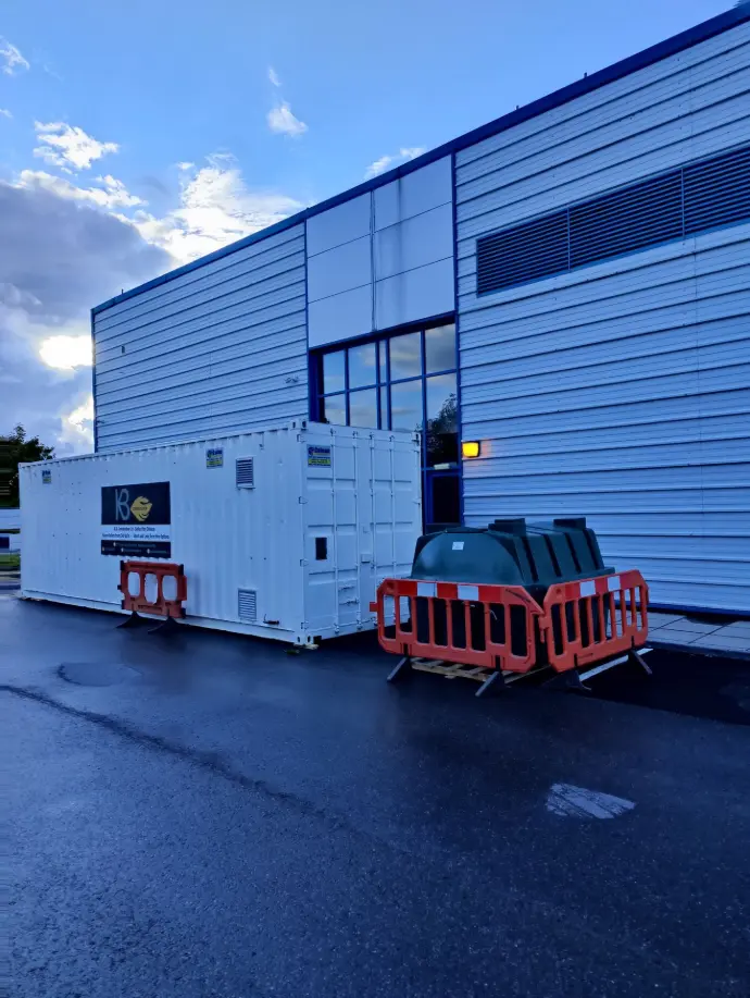 Containerised boiler package complete with steam boiler for max continuous output of 2500 kg/hr F&A100°C. Maximum working pressure of 10.89 Bar. Complete with dual fuel fired burner, control panel, pump and all necessary level controls and valves. The unit is complete with water feed tank and blowdown vessel. Lighting is provided within the unit. Supplied without diesel fuel tank. Hire rate per week.